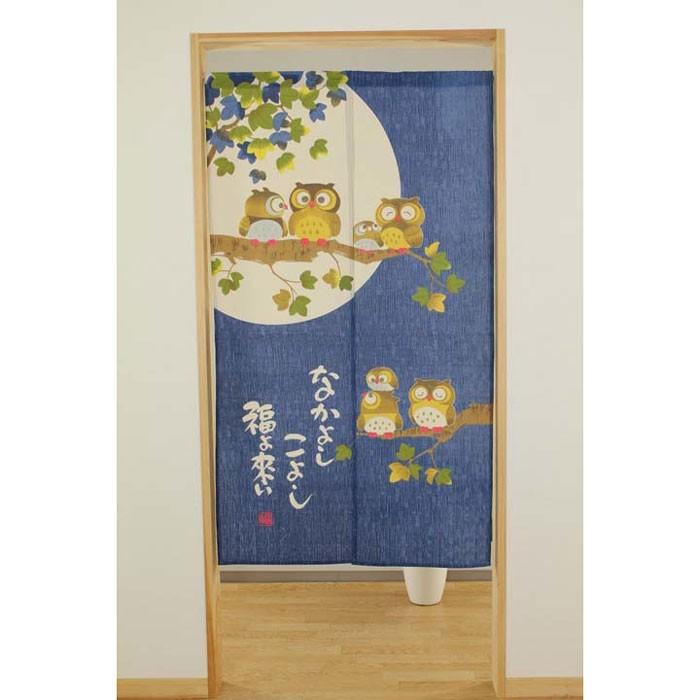 楽天市場 のれん おしゃれ 和風 ふくろう なかよしこよし福よ来い 85 150cm メール便送料無料 エヌズファーニチャー